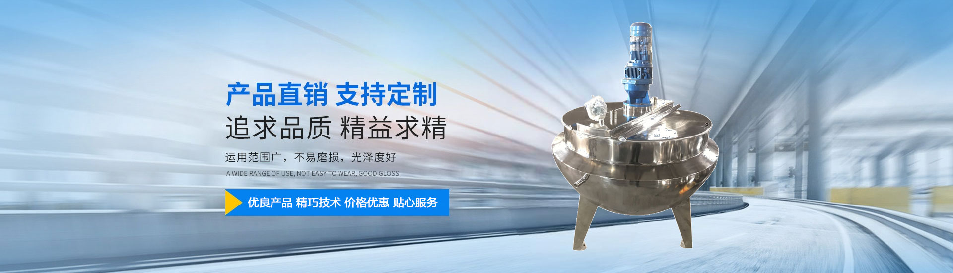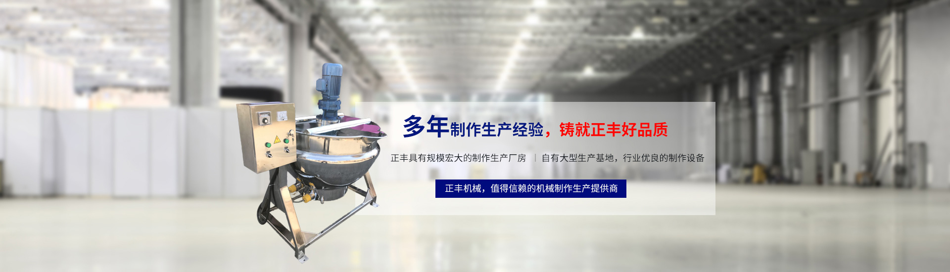 溫州市正豐機械是一家夾層鍋廠家,本公司產品:夾層鍋、蒸汽夾層鍋、可傾式夾層鍋、電加熱夾層鍋、蒸汽鍋、電熱鍋、燃氣鍋、壓力容器、制藥罐、反應釜、保溫罐、粉體攪拌機、殺菌罐、膠體磨等,擁有完整、科學的質量管理體系。本公司依靠科技進步和嚴格管理,完善的服務,為用戶提供優良高能的產品。 公司堅持“以人為本,以顧客為中心”的原則,以傳遞真誠、弘揚文明為主題,以科技興企、誠信立業為指導,靠團結、誠信、求實、創新的企業精神,通過以質量求生存、用科技創發展、以服務樹誠信、向管理要效益的發展過程。樹立企業品質,以市場為導向,把企業做大做強,以嶄新的姿態,開拓新的業務領域,竭力滿足不同顧客的各種需求。